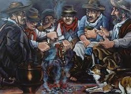 Determinado momento, sob o calor do fogo, a concentração só era quebrada pelo ronco do mate-amargo. Nas chaleiras e nas cuias de porongo concentravam-se as atenções da espera do próximo chimarrão.